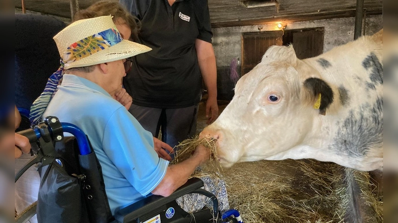 Die Tagespflege der Nachbarschaftshilfe Wörthsee war zu Besuch auf dem Erlebnisbauernhof in Unering